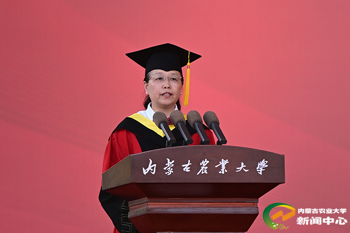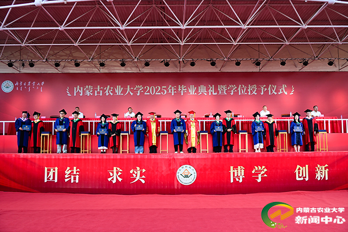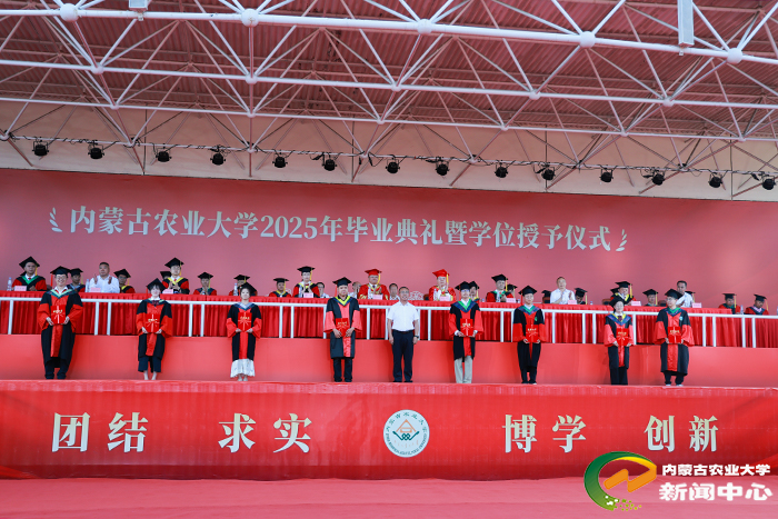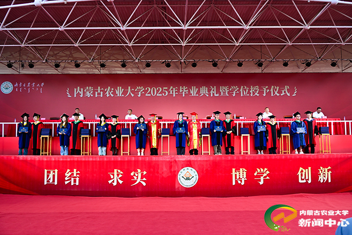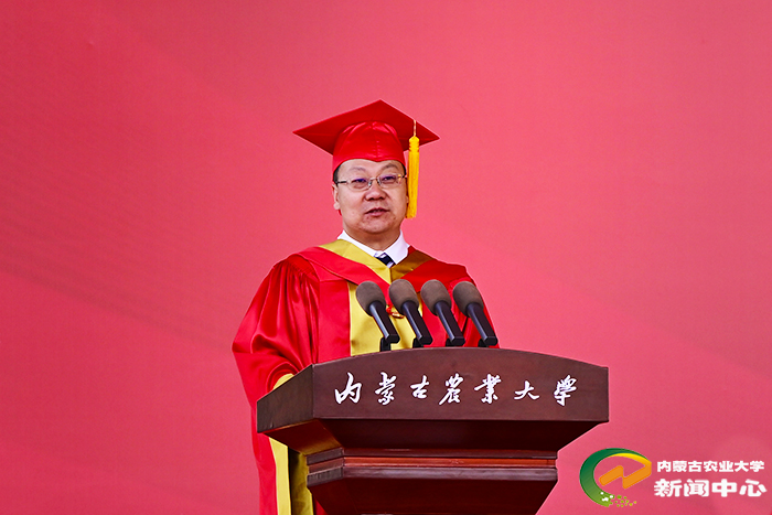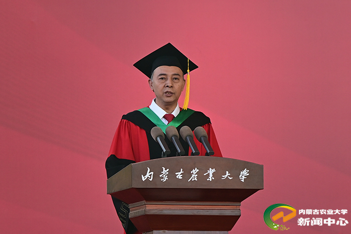 刘永斌勉励全体毕业生以家国情怀铸魂,做北疆大地的深耕者,深植兴农报国之志,扎根北疆热土,情系万里乡愁,在服务国家和自治区发展的洪流中书写人生华章,成为强农兴农的先锋人才;以高尚德行立身,做时代风气的引领者,做崇德修身的践行者,以自身的浩然正气和嘉言懿行、怀瑾握瑜,成为在时代变局中可堪大用、能担重任的栋梁之才;以务实笃行建功,做改革攻坚的实干家,用脚步丈量田野、用汗水浸润泥土、用智慧破解难题,成为创造惠及民生、推动发展的实干之才;以开拓创新致远,做未来蓝图的擘画者,永葆虚怀若谷的求知渴望,秉持脚踏实地的钻研精神,激扬敢为人先的创新锐气,成为驱动高质量发展、服务中国式现代化的有用之才。