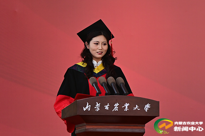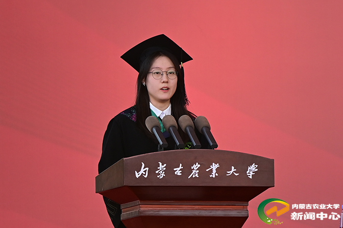 博士毕业生代表、食品科学与工程学院刘婷深情回顾了在农大的求学时光。她讲述了自己从初入校园时的懵懂,到在科研道路上不断攻坚克难,最终坚定“科研报国”理想的历程,表达了对母校和师长的感激之情。本科毕业生代表、草业学院李嘉禾表达了对母校多年来悉心栽培的感谢和对母校未来发展的美好愿景,表示将带着“强农有我”的信念为国家农业现代化、为乡村振兴贡献力量。