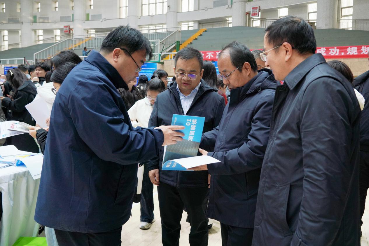 自治区高校学生就业创业服务中心副主任张建广、院领导到招聘会现场调研指导,详细询问岗位核心要求、专业匹配标准及人才发展路径,并围绕产学研融合、实习基地共建等,探讨深化校企合作方向。耐心倾听求职学生的择业规划与求职困惑,细致了解求职进展与需求,勉励同学们立足专业找准定位,在岗位实践中锤炼本领、实现自身价值。