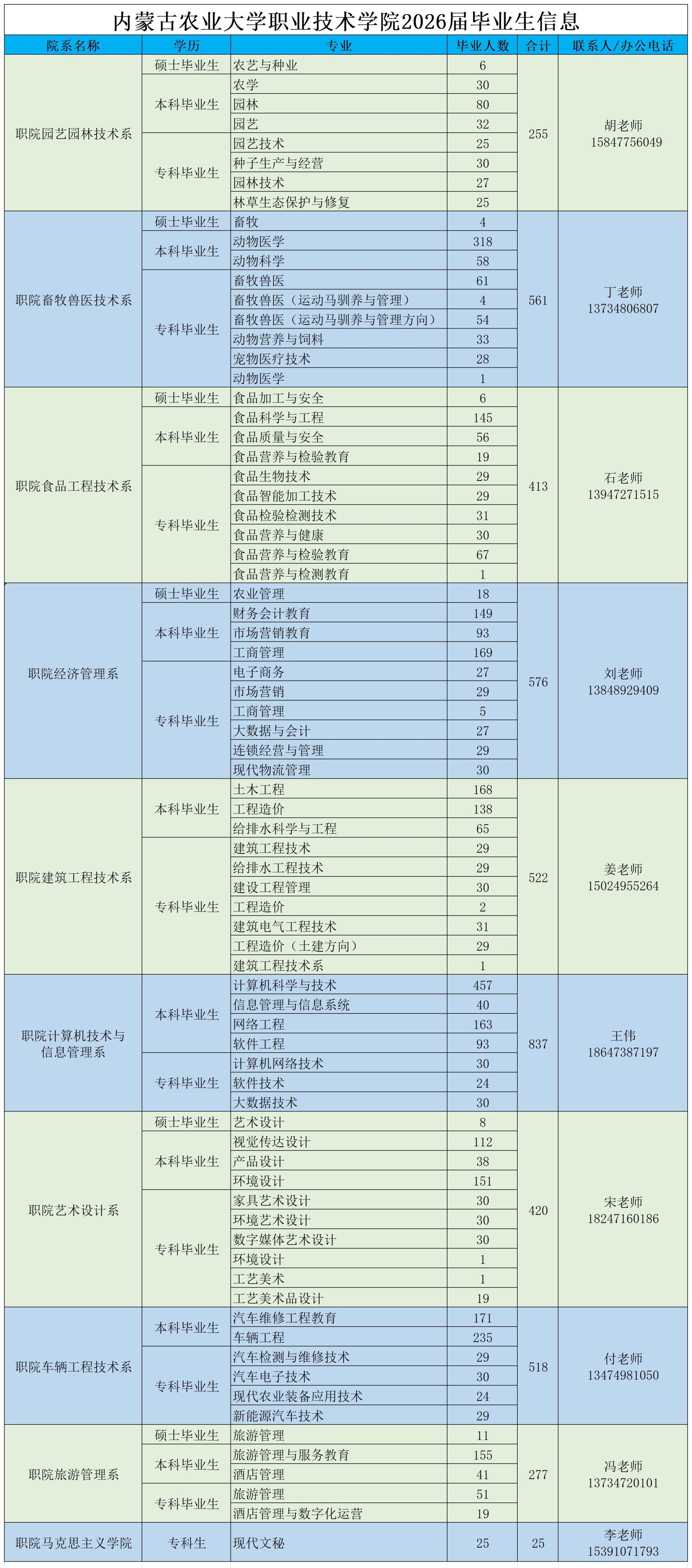 内蒙古农业大学2026届毕业生专业分布一览表